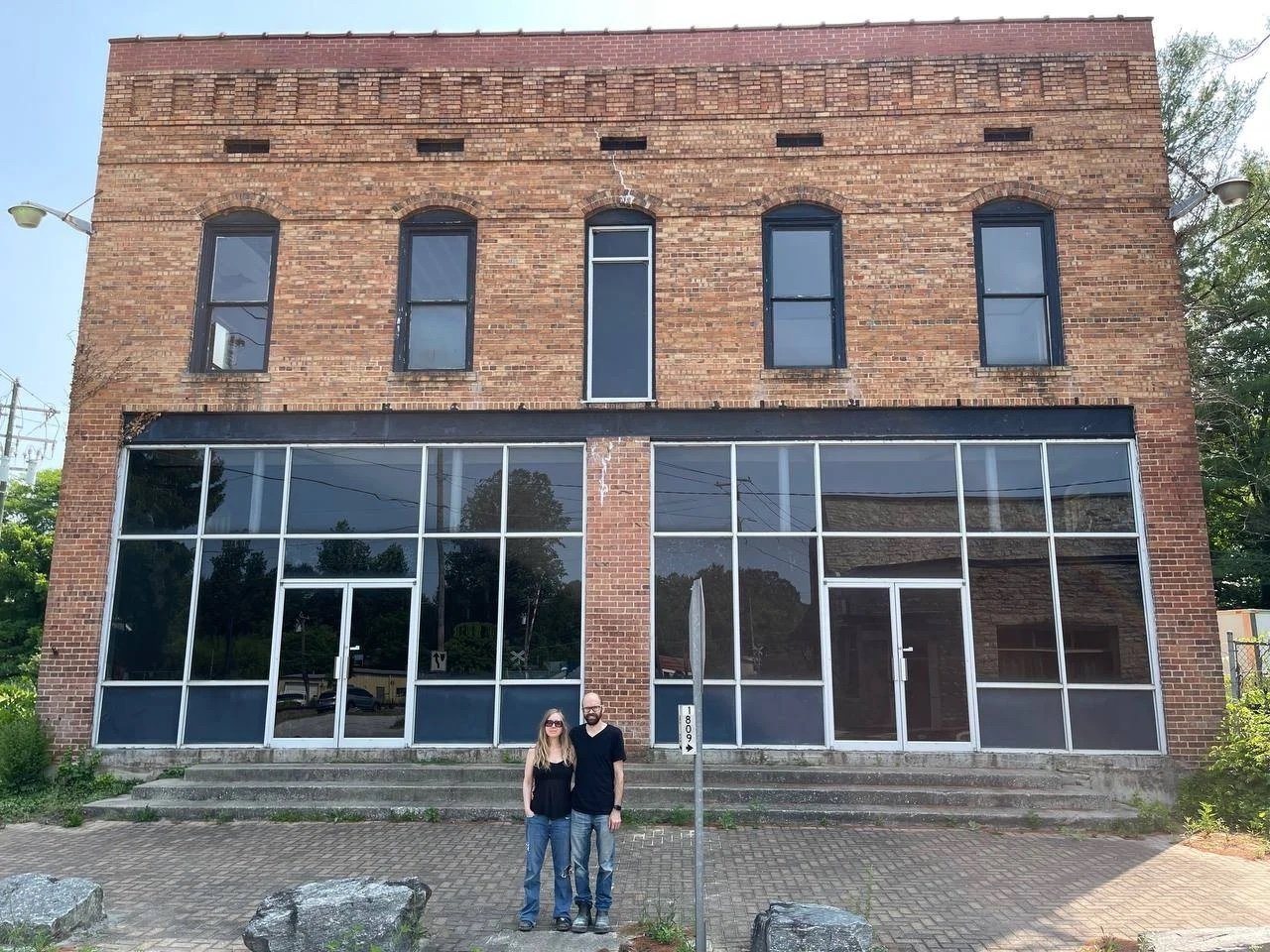 /Melanie and daniel in front of their new home, the Stepp-Walker Building in East Flat Rock