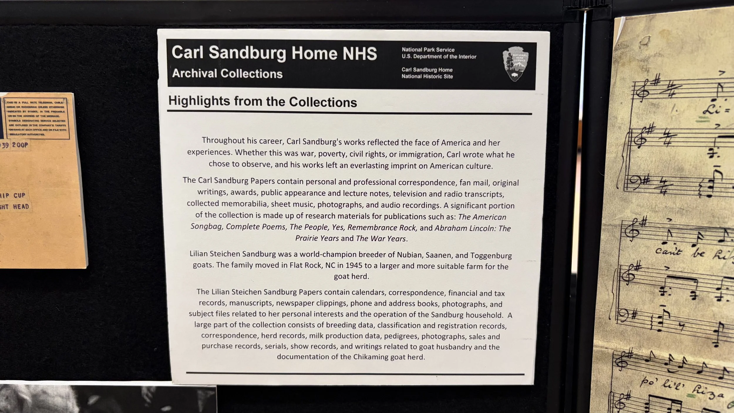 The Carl Sandburg Home National Historic Site preserves Connemara, the Flat Rock estate of Pulitzer Prize–winning poet and writer Carl Sandburg, where he lived from 1945 until his death in 1967. Operated by the National Park Service, the site offers visitors a glimpse into Sandburg’s life and legacy through tours of his home, extensive hiking trails, and the preservation of his wife Lilian’s renowned goat farm. The park also houses Sandburg’s vast literary collection and promotes his enduring contributions to American poetry, history, and folk music.