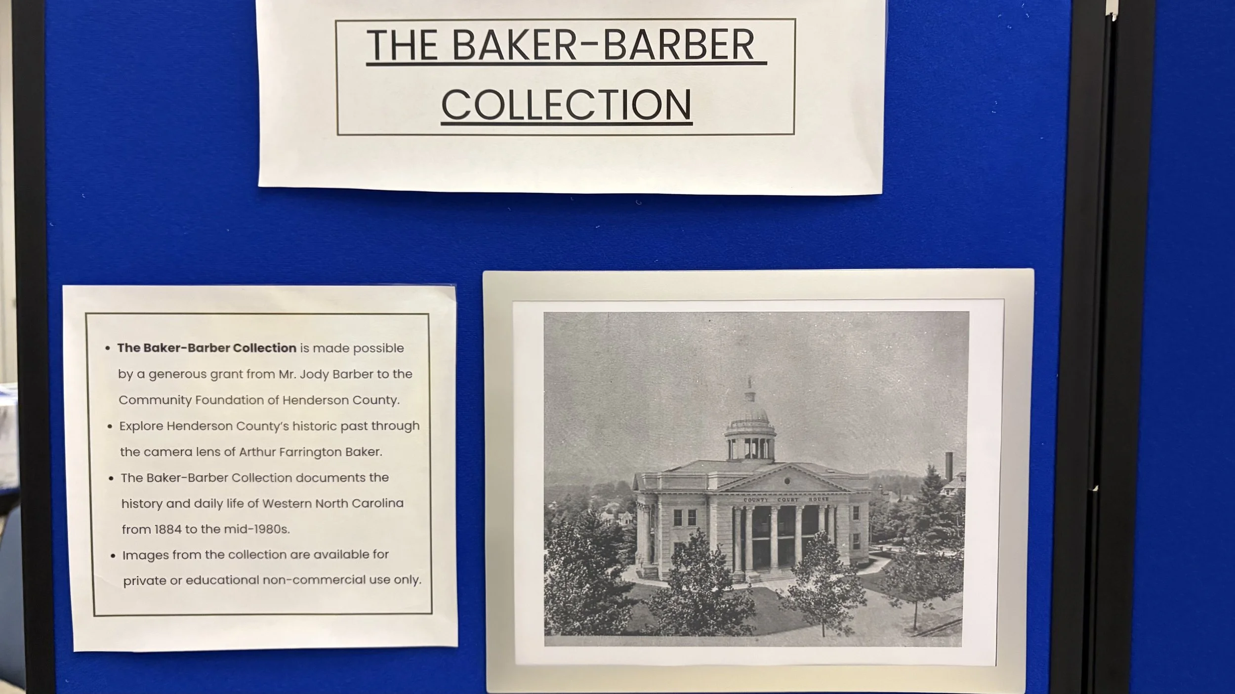The Blue Ridge Community College Archive and Special Collections, established in January 2023 as part of the library’s local history initiative, serves as a growing research resource documenting both the history of the college and the surrounding region. Originally focused on collecting oral histories, the archive has expanded to include photographs, documents, books, newspaper articles, school regalia, and other materials that trace the college’s development from its founding in 1969 to the present, as well as the broader histories of Henderson, Transylvania, and Buncombe counties. Open to students, faculty, and the public, the archive provides access to primary source materials and supports preservation efforts through services such as oral history recording and digitization, helping to safeguard personal and community stories for future generations.