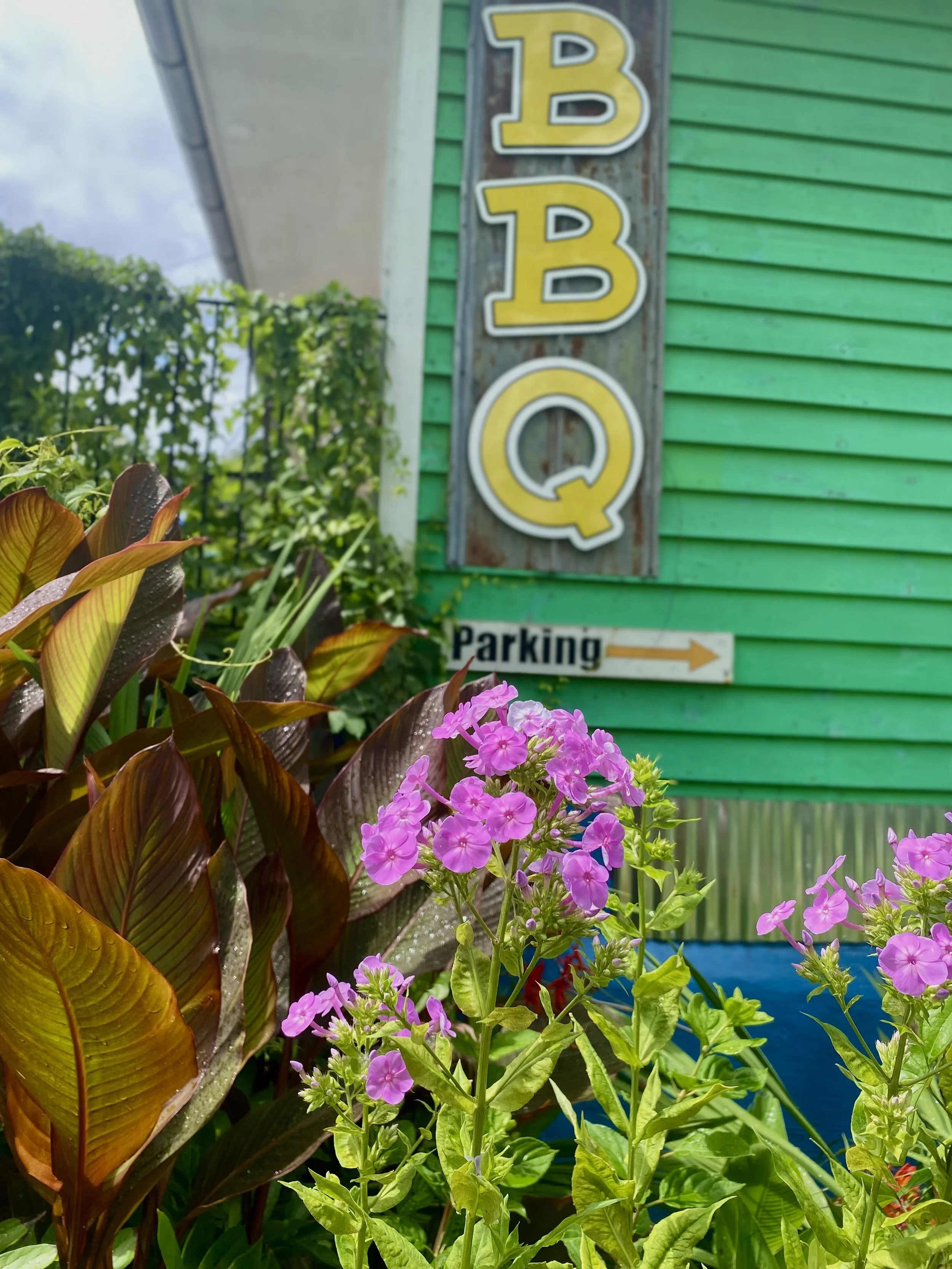 And really, what could be better than a genial conversation with beautiful flowers over a plate of tender brisket and smoked chicken at Hubba Hubba Smokehouse?