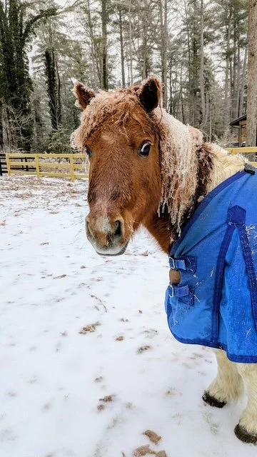 Despite the frigid temps and my need to keep TaterTot warm, he often chose to stand in the sleet and snow. Was that instinct, the need to be on alert, or perhaps just a warm, waterproof blanket?