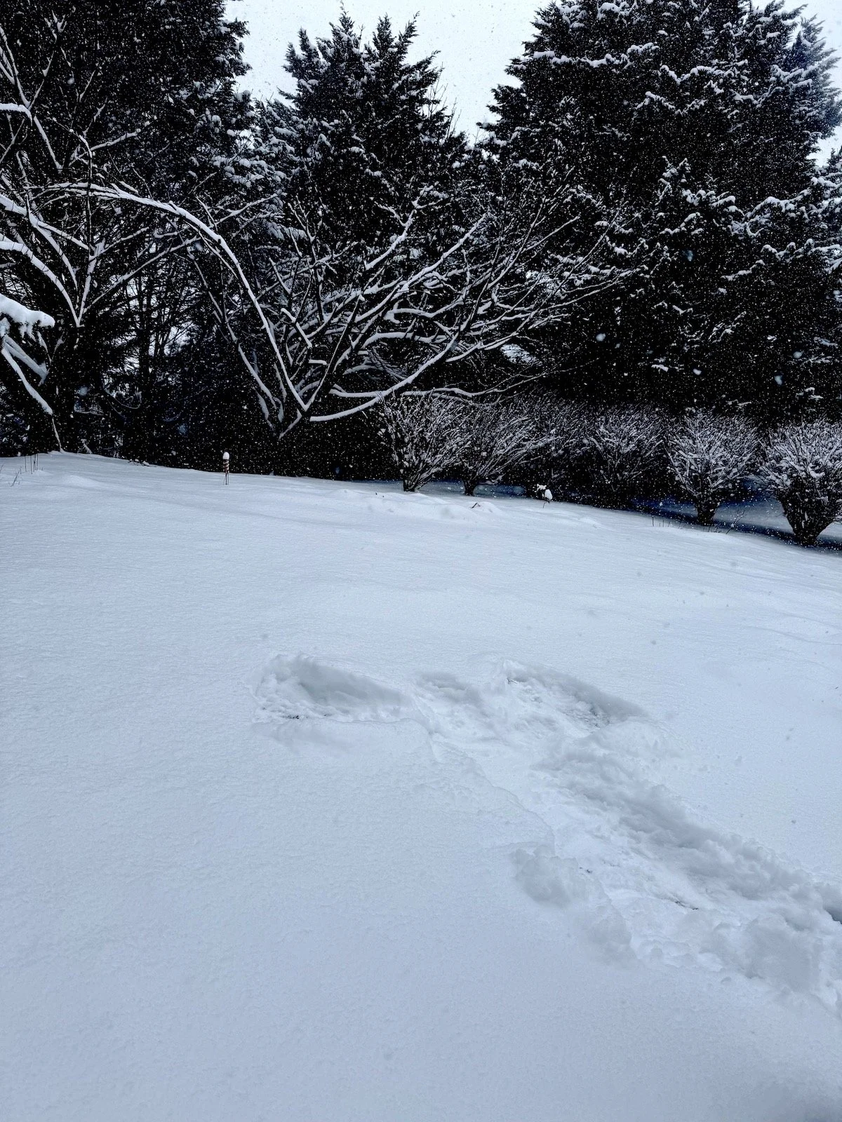 My out-of-state children and grandchildren challenged me to make a snowman, but the snow was too powdery. Instead, I created a snow angel the old-fashioned way, which did not disappoint.