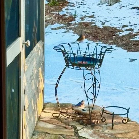 From ice-covered everything to a wonderful pair showing up for a little treat in the after-storm sunshine.