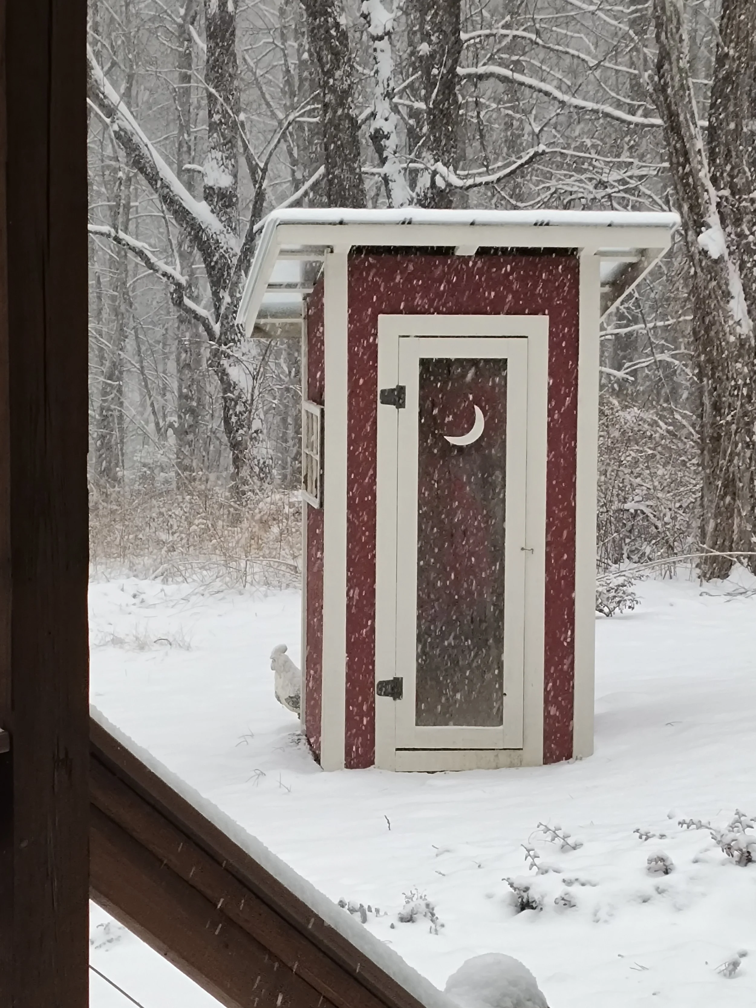 What was once a functioning out house on my property is now my garden shed. Looks cute in the snow!