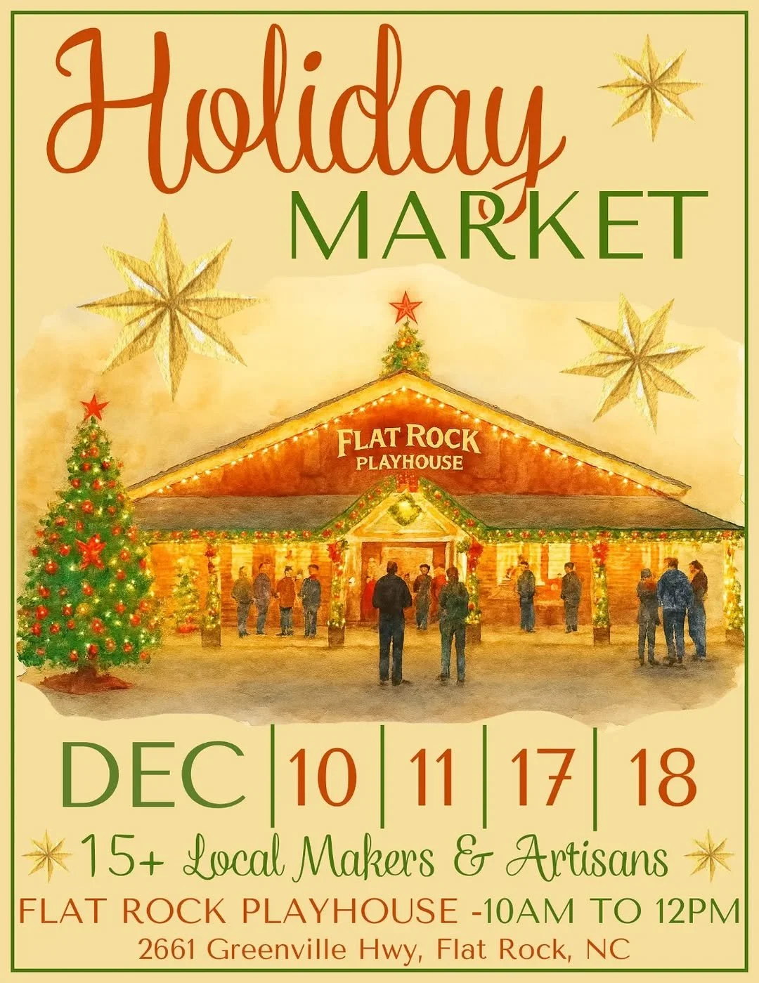 We’re excited to partner with @frplayhouse for four festive days of shopping local in Flat Rock, NC! 🎄✨ Come see us the two weeks before Christmas, 10–12pm on Wednesdays and Thursdays, and discover beautiful handmade gifts from local makers. 🎄✨ While you’re there, grab tickets to one of the upcoming holiday shows at the Playhouse! Let’s make this season meaningful by choosing to support local and handmade. ❤️🛍️ Shopping also available before the matinee show for people attending