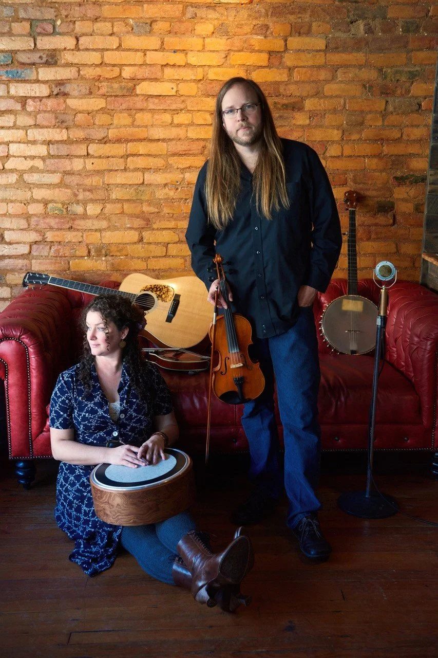 Tom Eure and Amelia Osborne are a lively Carolina folk pair from the Charlotte area who offer a melding of Celtic, Appalachian and spiritual influences. Their style fluidly changes from one instrument to the next, swirling together fiddles, banjos, bodhran, mandolins, guitars, and rousing vocal harmony. They’re going on ten years performing together.